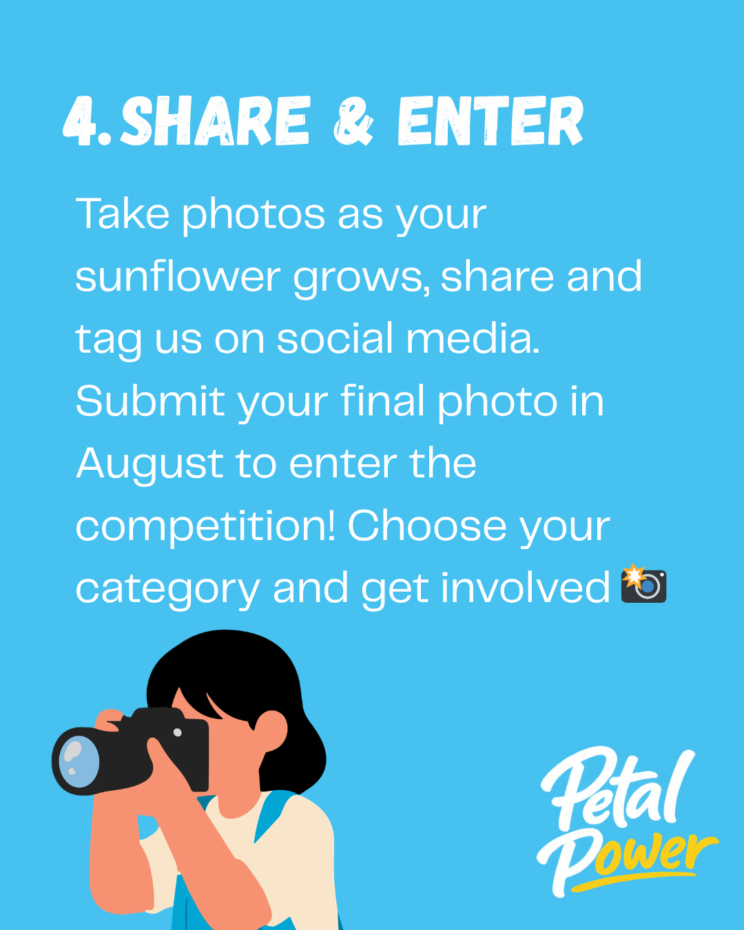 Submit photos of your sunflower between 10–23 August and take part in our friendly competition.